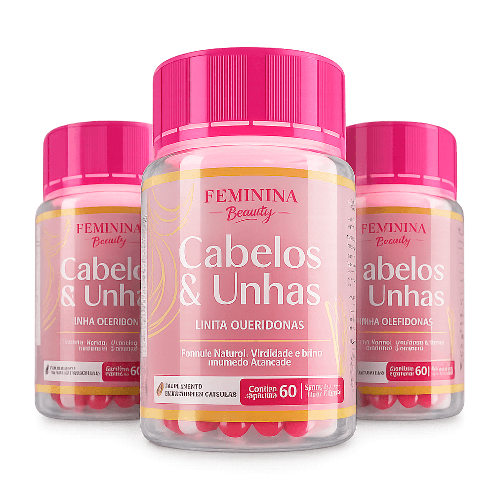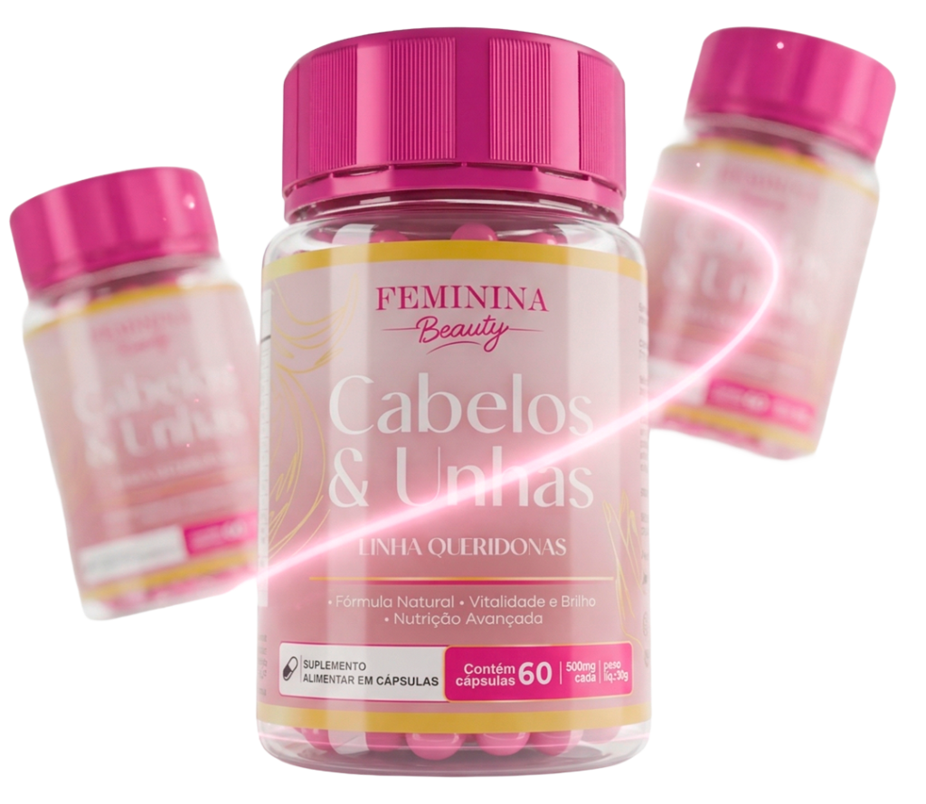 O Cabelos e Unhas | Feminina Beauty foi desenvolvido para nutrir seu corpo de dentro para fora, ajudando no fortalecimento dos fios, crescimento saudável e resistência das unhas.